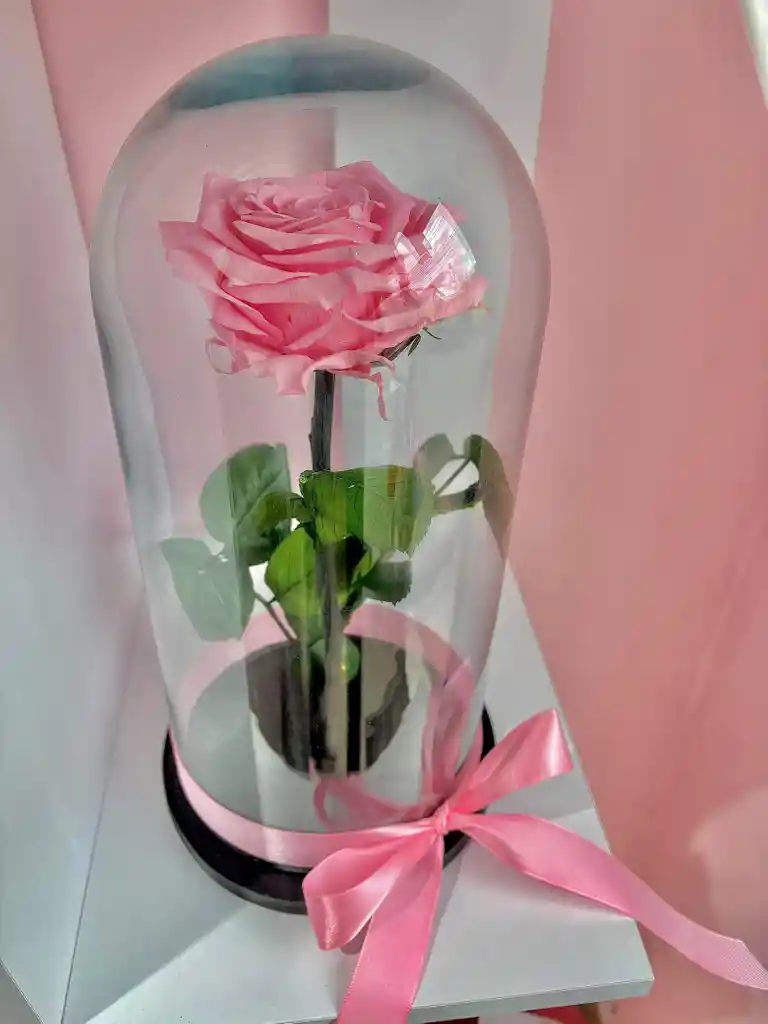 La rosa natural preservada es un detalle perfecto para ocasiones especiales como cumpleaños, aniversarios cualquier otra fecha especial. Decora espacios gracias a su elegancia e imponencia gracias a la cúpula de vidrio y base de madera que la protegen. Dura aproximadamente 6 años.