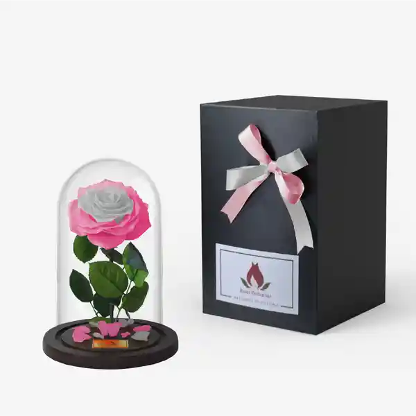 Rosa preservada de 25 cms de alto edición especial con duración de 1 a 3 años. incluye decoración con petálos. cintas. carta de cuidados. caja con diseño disponible y mensaje para la tarjeta. Un regalo para nunca olvidar!