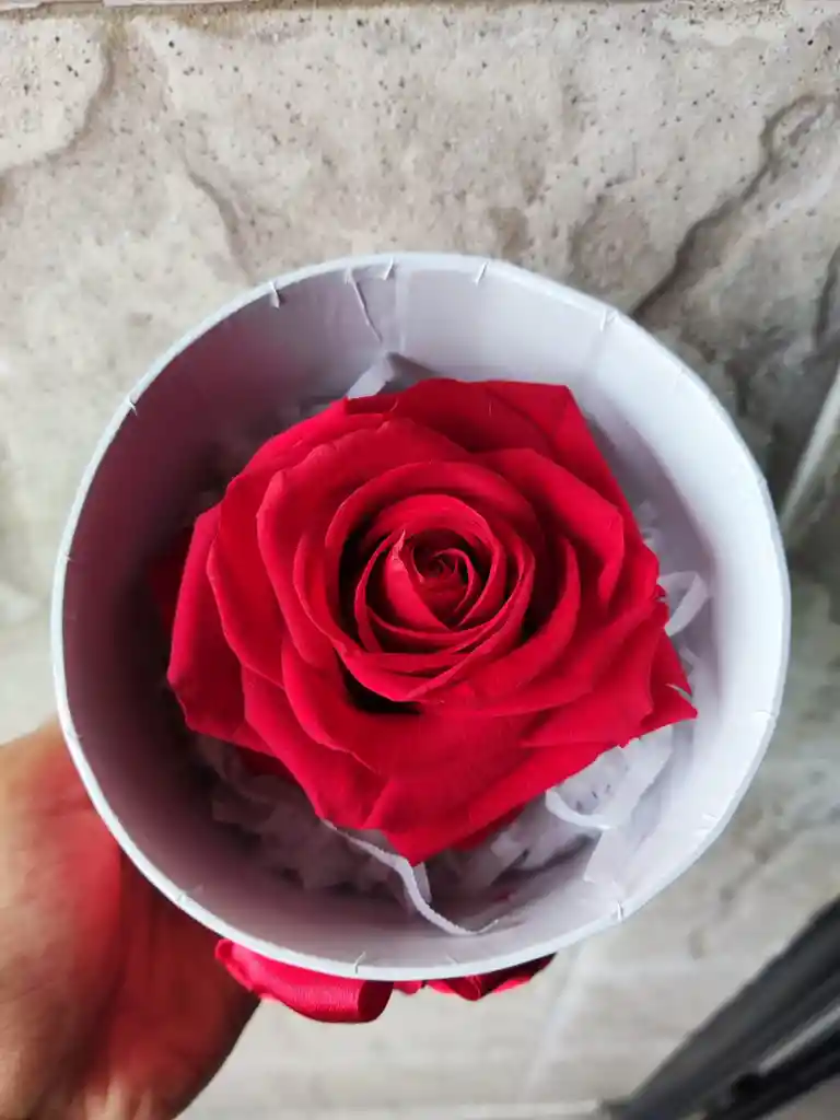 Cabeza de Rosa preservada Roja en caja de lujo con decoración en tela