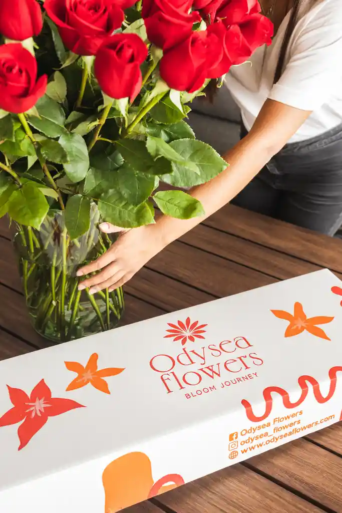 40 tallos de rosa roja de 40 cm. Tarjeta en blanco . Envío en caja de 71x18x18 cm. Compras de viernes a lunes - entrega martes. Compras de de martes a jueves - entrega el viernes. Cosecha y despacho en 24 horas .