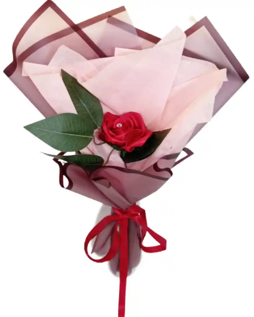 rosa roja eterna en presentacion bouquet con tu mensaje personal y globo sencillo