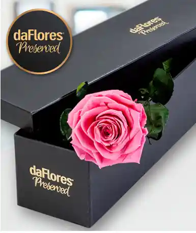 Sorprende a ese ser especial con una nuestras Rosas Preservadas de Tallo Largo. Esta hermosa rosa rosada viene finamente empacada en nuestra caja de Lujo para su protección. Además, no requiere de agua y dura muchos meses gracias a la forma en que es preservada.