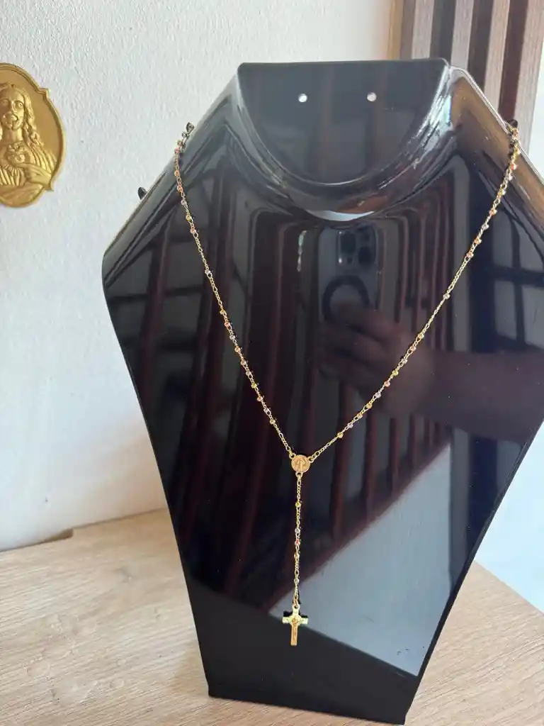 Eleva tus momentos de oración con este hermoso rosario artesanal, elaborado con cuentas en acero inoxidable de alta calidad que reflejan suavidad, luz y pureza con detalles elegantes. Incluye: ✨ Medalla dorada en acero inoxidable ✨ Cruz dorada especial y distintiva en acero inoxidable ✨ Cadena en acero inoxidable para mayor durabilidad ✨ Ideal para uso diario, regalos espirituales, bautizos, primeras comuniones y acompañar tus espacios sagrados Su diseño delicado y moderno lo convierte en una pieza significativa, perfecta para quienes buscan un rosario hermoso, resistente y con un acabado premium.