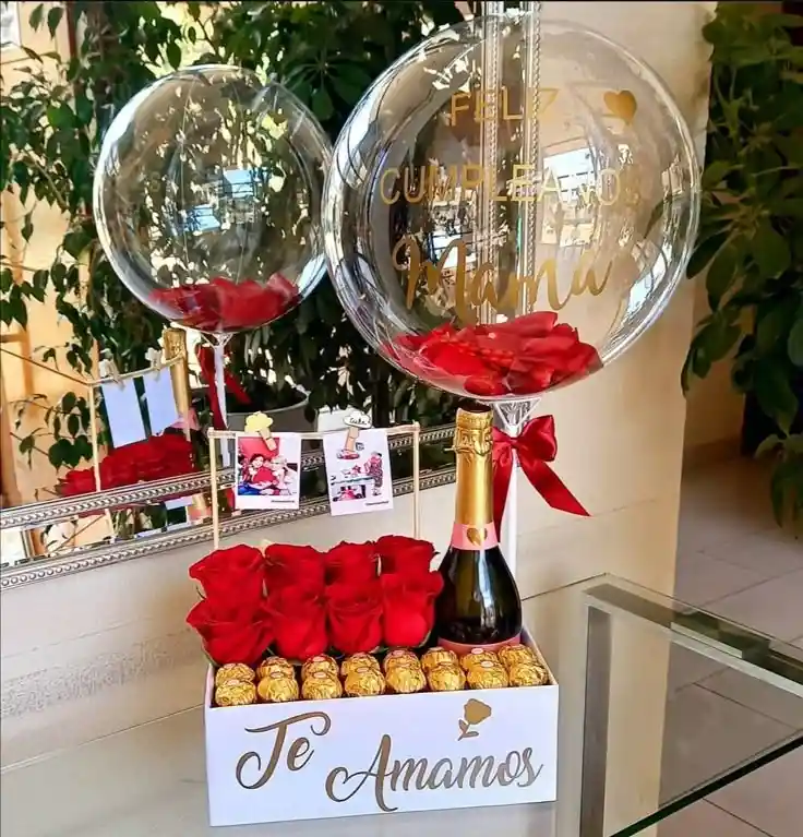 El regalo perfecto sí existe… y lo tenemos para ti ✨🌹 Sorprende de verdad con este hermoso ramo de rosas en caja cuadrada, diseñado para enamorar desde el primer momento 💕 Incluye: 🌹 Rosas frescas y cuidadosamente seleccionadas 🍫 16 deliciosos chocolates Ferrero 🍾 Botella de vino espumoso Chénet Rosé, elegante y sofisticado 🎈 Globo decorativo que le da ese toque especial 💌 Mensaje personalizado o fotos para hacerlo único e inolvidable Es más que un detalle… es una experiencia llena de amor, elegancia y dulzura 💖 🎁 Perfecto para cumpleaños, aniversarios o simplemente para decir “te amo” de una manera inolvidable.
