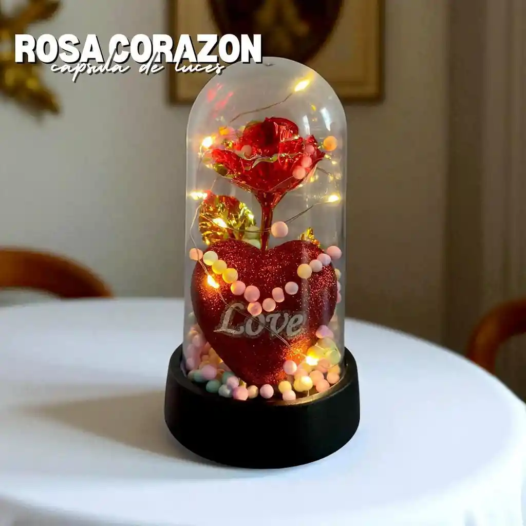 *ROSA CORAZÓN ♥️* Nuevo diseño de rosa eterna metalizada con detalle de corazón con mensaje *Love metalizada* 🌹 especial para san Valentín •Rosa eterna metalizada •detalle de corazon •Cápsula •Pilas reloj •Luces cálidas