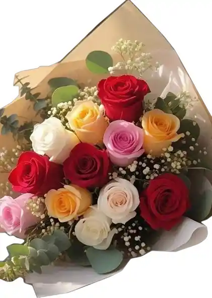 Bouquet de rosas multicolor que representa amor, alegría y ternura. Un detalle lleno de significado para sorprender en cualquier ocasión especial.