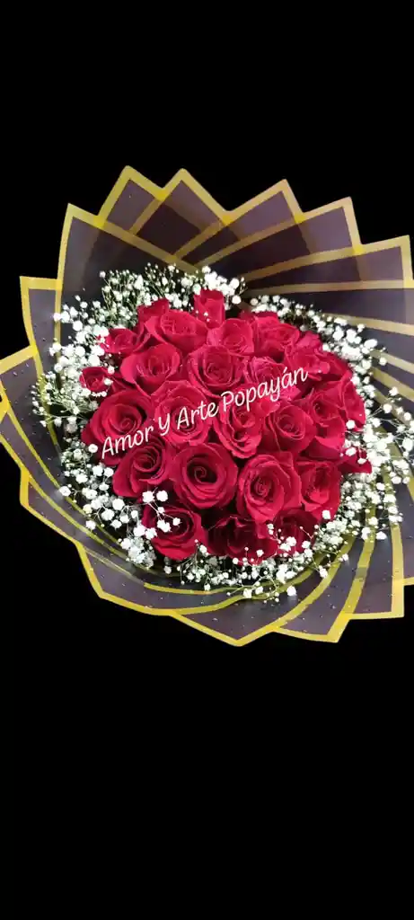 Bouquet de rosas y perla. Incluye: moño, tarjeta con mensaje personalizado, aroma y brillo