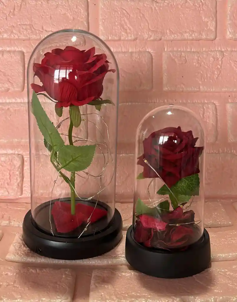 ROSAS ETERNAS X2 ROJA GRANDE Y PEQUEÑA CON LUCES EN CAPSULA / ROSA PRESERVADA / ROSA INMORTALIZADA (( FUNCIONA CON PILAS VIENEN INCLUIDAS )) COD.3637-3636 REF-4-3