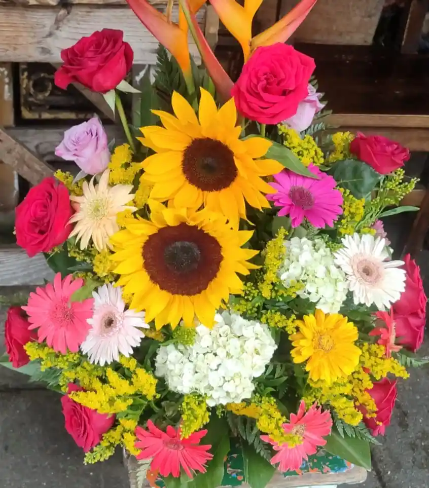 Un ramo que hará que el corazón lata fuerte! 💐🌻 Nuestro ramo grande de rosas flores y girasoles es una explosión de amor, alegría y gratitud. Perfecto para sorprender a alguien especial en un día inolvidable.