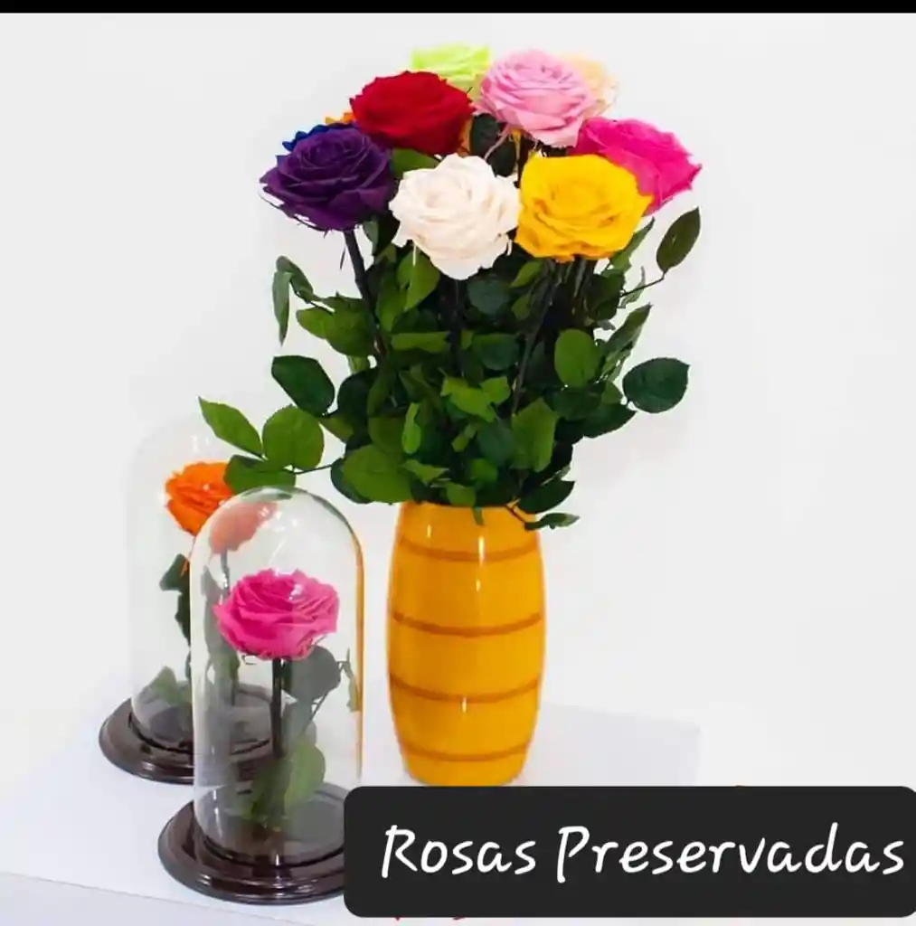 Rosas preservedas, tambien conocidas como rosas eternas, que mantienen su belleza intacta durante años. color que elija: Roja, Rosada, Amarilla, Lilas, Negra,.... empaque: cupula, individuales para florero. (como lo quiera el cliente)