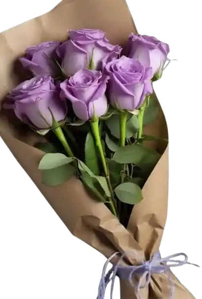 Bouquet de rosas lavanda frescas envueltas en papel kraft, diseñado para transmitir calma, elegancia y admiración. Un detalle sofisticado y moderno.