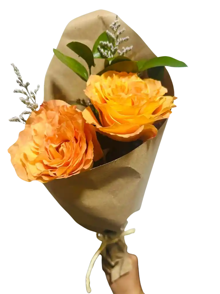 2 flores de rosa naranjas con follaje verde. Si desean agregar una nota personalizada, pueden dejarla en el chat del RT y nosotros la veremos. La flor puede variar en tamaño y tonalidad. IMAGEN DE REFERENCIA