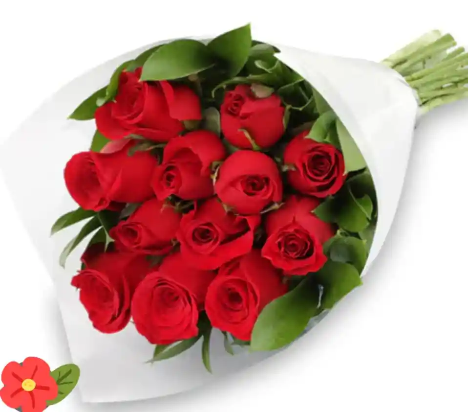 Bouquet por 12 rosas rojas tipo exportación, papel decorativo, tarjeta con mensaje personalizado