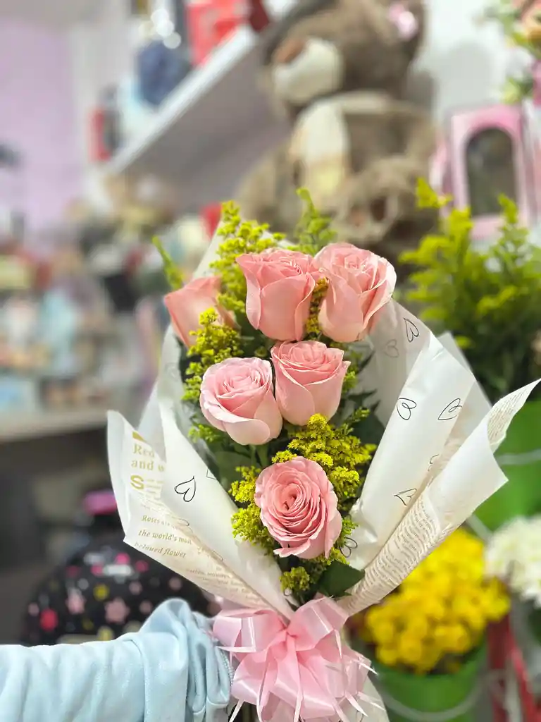 6 ROSAS ROSADAS DECORADAS