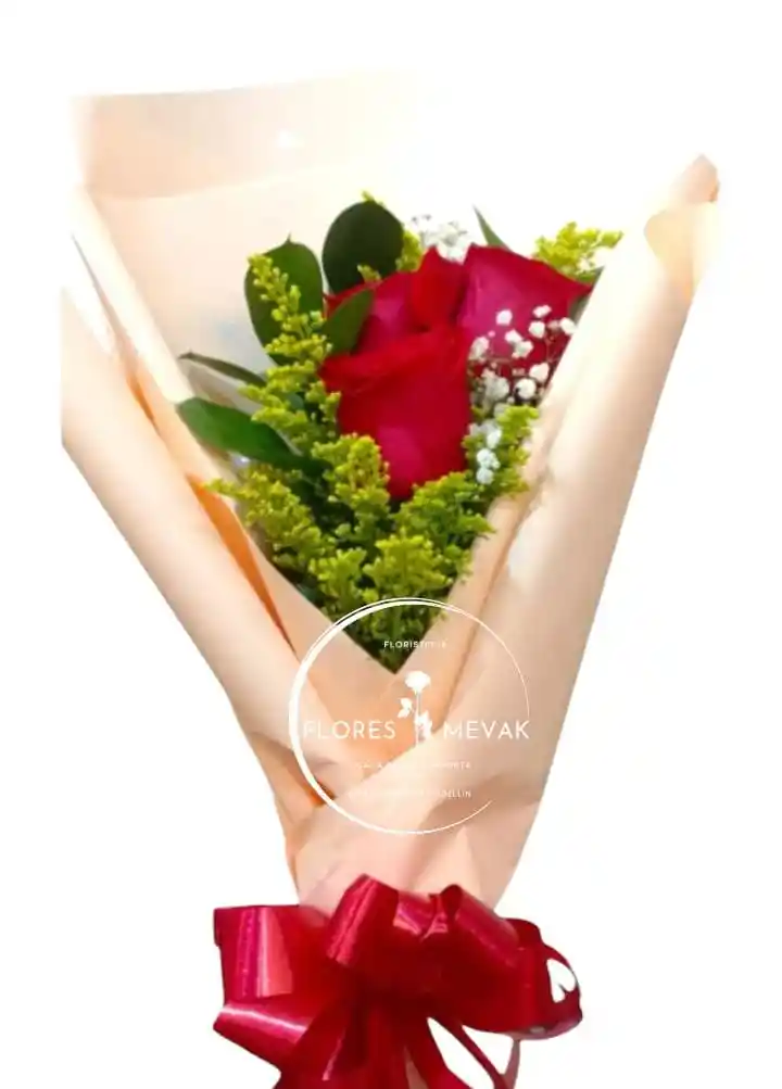 Hermosas rosas rojas x3 con envoltorio en papeles coreanos, un detalle perfecto para complementar