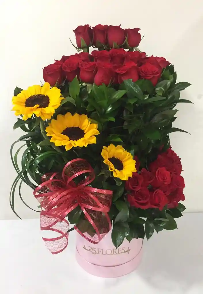 ARREGLO FLORAL CON 70 ROSAS ROJAS FREEDOM Y TRES GIRASOLES (Por favor realice su compra con anterioridad, necesitamos minimo 3 horas para realizar este producto) Sujeto a disponibilidad Nota: 25Flores esta Ubicada en el Municipio de Chía, es muy IMPORTANTE que proporcione la siguiente Información, Indique en la Dirección, Nombre del conjunto, Numero de la torre, Numero del Apartamento, Indique si es vereda y Nombre del Barrio. Si es un periférico comuníquese con nosotros al WhatsApp 315-5143545. de color Multicolor ideal para el Felicitaciones