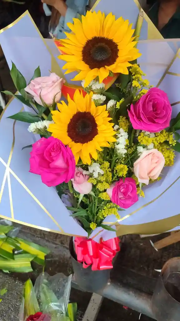 Nuestro hermoso ramo de rosas y girasoles es un regalo perfecto para expresar amor, admiración y felicidad. La combinación de estas dos flores crea un efecto visual impactante y emotivo que seguro hará que su corazón lata más rápido.