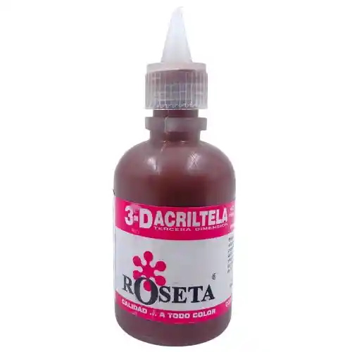 La acritela roseta 3D es una pintura acrílica para decorar, bordear y pintar sobre tela con acabado mate, relive o suave al tacto, de gran consistencia y definición en los trazos. Vienen en un envase de 30cc. Antes de pintar en tela cualquier prenda debemos lavarla muy bien para quitar el apresto, pero no utilices suavizantes ya que pueden causar que la prenda repela la pintura; dependiendo de la tela tendrás que estirarla o no, pero es importante que esté planchada. Es importante colocar papel absorbente debajo de la tela para que no se traspase pintura a partes que no deseamos pintar. Con un pincel fino empezamos a pintar los contornos de la figura y con un pincel más grande rellenamos el dibujo y vamos creando efectos con distintos colores, pero teniendo cuidado de no salirnos. Cuando hemos terminado lo dejamos secar unas 24 horas.