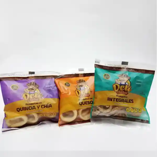 Pasabocas de yuca bajo en grasa por 30g marca DelisinÏ Sabores: Queso integrales quinoa y chia e integrales con ajo