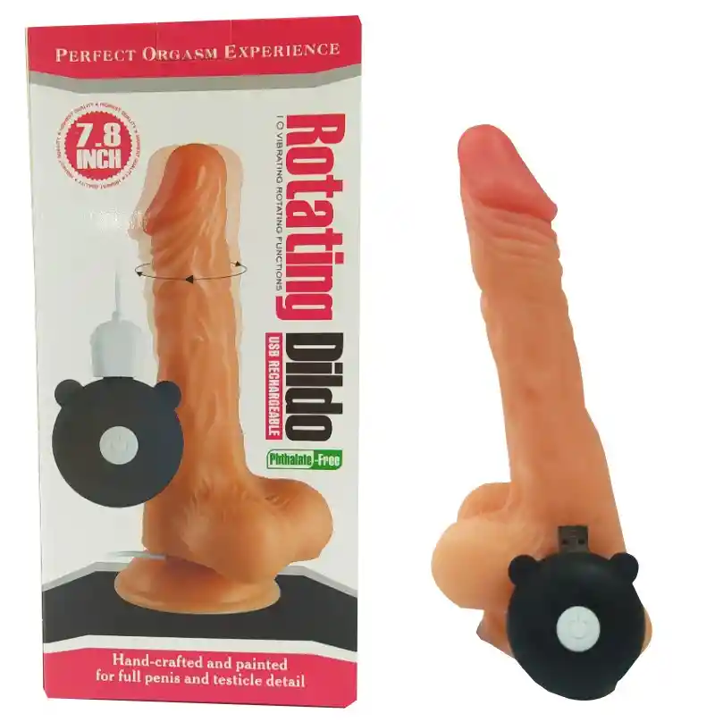 Vibrador con testículos en forma de pene, sensación realista, de 7.8 pulgadas de diámetro, con cabeza giratoria. 10 modos de vibración. USB Recargable.