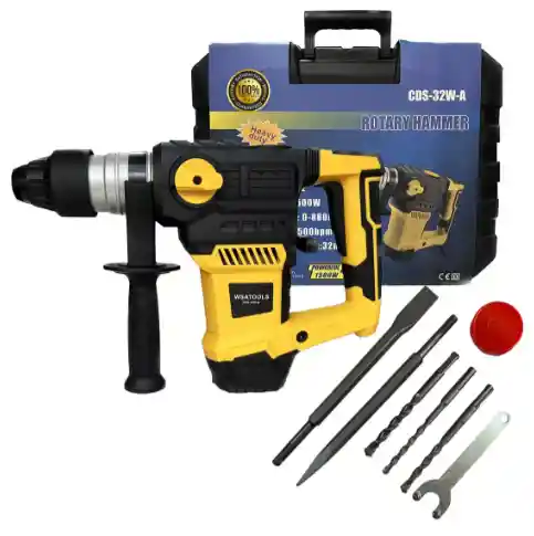 Descripción NOTA IMPORTANTE: EL COLOR DEL ROTOMARTILLO PUEDE VARIAR SEGUN DISPONIBILIDAD, PUEDE LLEGARLE EN COLOR AMARILLO, AZUL, VERDE O ROJO. CARACTERÍSTICAS - Velocidad variable electrónica que permite controlar la velocidad de la perforación y el cincelado - Energía de impacto de 10 Joules que proporciona hasta 42% más de rapidez en todo tipo de aplicaciones de perforado y cincelado - El adaptador de mango de posición trasera ayuda a maximizar la comodidad del usuario - El sistema de embrague de la herramienta ayuda a prevenir lesiones cuando las brocas se inmovilizan al penetrar concreto. - Mango amortiguado para mas confort del operario ESPECIFICACIONES - Potencia: 1500 W - Capacidad en Concreto: 1-2" - Velocidad de giro en vacío: 210 - 415 RPM - Energía de impacto: 10 J - Frecuencia de golpe: 0 - 4000 IPM - Peso: 6,2 kg Incluye: - Juego de brocas sds plus ( 3 brocas + punta + cincel) - Maletin de transporte - Grasa para lubricar -Llave