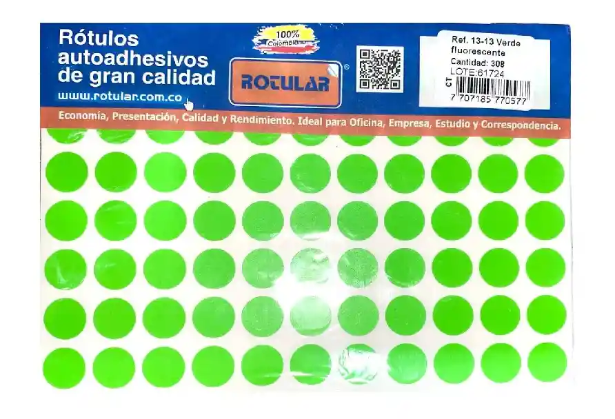 El rótulo adhesivo 13 x 13 mms, es un sticker de papel con recubrimiento mate, que ofrecemos en diversidad de colores. * Características del producto: Colores: Planos y fluorescentes.* Material: Papel adhesivo