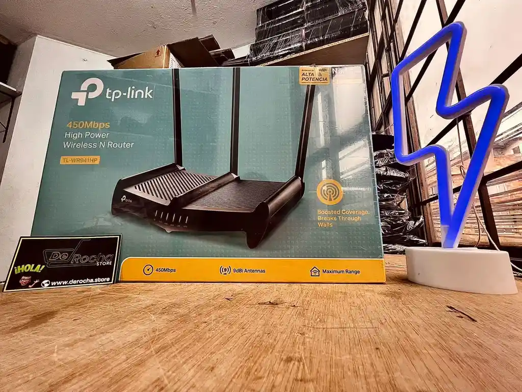 =============== Derocha Servicios y Soluciones Informáticas =============== ========================== DEROCHA STORE =========================== Router TL-WR941HP Los amplificadores independientes proveen significativamente una salida de alta potencia de hasta 1000mW*1, asegurando que su señal inalámbrica sea fuerte para penetrar obstáculos. DESCRIPCIÓN Este modelo TL-WR941HP te permitirá crear redes de gran velocidad e integrar todos los aparatos electrónicos inteligentes para que disfrutes de la mejor conexión sin interrupciones. Conexión sin cables Con este equipo inalámbrico podrás desplazarte con total libertad por tu casa u oficina y disfrutar de la conexión sin estar pendiente de los cables. Más antenas, mejor señal Con este dispositivo, las paredes y techos no son un obstáculo: los múltiples receptores garantizan un mejor rendimiento en lugares con gran nivel de interferencia. Más velocidad Si lo que necesitas es un equipo que te permita realizar tus tareas diarias sin demoras, con una velocidad de 450 Mbps este dispositivo es perfecto para vos. Internet en todos lados Con una banda de 2.4 Hz, el alcance de la señal será excelente para que puedas utilizar tus aparatos electrónicos en cualquier parte. CARACTERÍSTICAS Estándares Wi-Fi 4: IEEE 802.11n / b / g 2,4 GHz Velocidades WiFi N450: 2,4 GHz: 450 Mbps (802.11n) Casas de 4 habitaciones WiFi Range: 3 antenas desmontables de alta ganancia de 9 dBi Varias antenas forman una matriz de refuerzo de señal para cubrir más direcciones y áreas grandes FEM de alta potencia: Mejora la potencia de transmisión para fortalecer la cobertura de la señal. Legado de capacidad WiFi: *Modos de trabajo Modo enrutador *Modo de punto de acceso *Modo extensor de rango HARDWARE Procesador : CPU de un solo núcleo Puertos: Ethernet 1 puerto WAN de 10/100 Mbps 4 puertos LAN de 10/100 Mbps Botones: *Botón de encendido / apagado de Wi-Fi de Botones *Botón de encendido / apagado *Botón WPS *Botón de reinicio Potencia: 12 V 1,5 A SEGURIDAD Encriptación WiFi : WEP / WPA / WPA2 / WPA / WPA2-Enterprise (802.1x) Seguridad de red: Control de acceso / Enlace IP y MAC / Puerta de enlace de la capa de aplicación Red de invitados : 1 × Red de invitados de 2,4 GHz Servidor VPN: OpenVPN / PPTP Medidas: 4.8 x 22.7 x 19 cm QUE INCLUYE LA COMPRA 1x Router