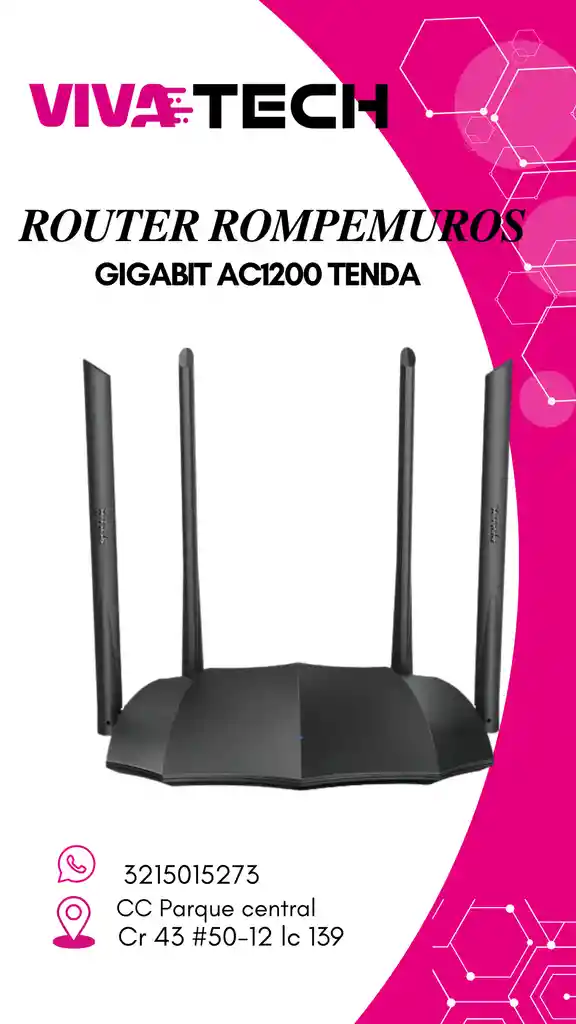 routers WiFi de doble banda (2.4 GHz y 5 GHz) diseñados para ofrecer velocidades rápidas (hasta 1167 Mbps) para uso doméstico, streaming y juegos, soportando fibra óptica de alta velocidad (Gigabit), e incluyendo antenas potentes y tecnologías como Beamforming para mejorar la cobertura y la estabilidad, gestionándose fácilmente a través de una aplicación móvil para funciones como control parental y optimización de tráfico. Características Principales: Doble Banda (2.4 GHz y 5 GHz): Combina ambas bandas bajo un solo nombre de WiFi para que los dispositivos se conecten automáticamente a la más adecuada, ofreciendo 5 GHz para velocidad y 2.4 GHz para mejor penetración de muros. Velocidad AC1200: Alcanza velocidades concurrentes de hasta 1167 Mbps (867 Mbps en 5 GHz y 300 Mbps en 2.4 GHz). Puertos Gigabit: Incluye puertos WAN/LAN Gigabit para aprovechar al máximo conexiones de fibra superiores a 100 Mbps. Antenas y Tecnología: Incorpora varias antenas externas (generalmente 4 de 5 dBi o 6 dBi) y tecnología Beamforming para enfocar la señal hacia los dispositivos, mejorando la cobertura y estabilidad. Funciones Inteligentes: Ofrece priorización de tráfico (QoS), migración de cuenta de banda ancha, soporte IPv6, WiFi de invitados y control parental a través de la aplicación Tenda WiFi. Modelos Comunes (Ejemplos): Tenda AC10 / AC10U: Destaca por sus puertos Gigabit y antenas de 6dBi. Tenda AC8: También con puertos Gigabit, antenas potentes y Beamforming. Tenda AC5: Modelo más compacto pero con las mismas capacidades de doble banda. Beneficios: Mejora la Experiencia WiFi: Ideal para streaming 4K, juegos online y múltiples dispositivos conectados simultáneamente. Fácil de Configurar y Gestionar: La aplicación Tenda permite una configuración rápida y gestión remota. Cobertura Ampliada: Gracias a sus antenas y tecnologías de seguimiento de señal.