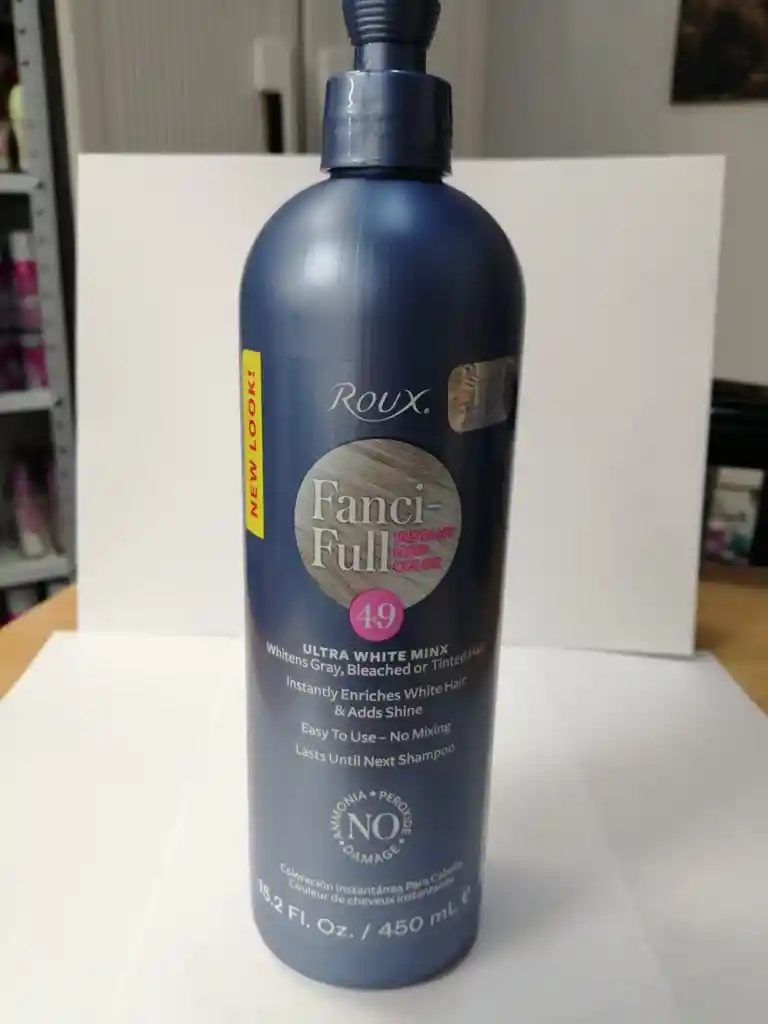 Roux Fanci-Full *49 Coloración Temporal de Aclarado 450ml Descripción Una completa gama de tonos brillantes, para dar color al cabello devolviéndole suavidad y luminosidad. Gracias al aceite de argán y a las ceramidas. Fanci-Full recupera la fuerza del cabello mientras lo colorea y lo reestructura, aportándole un aspecto sano y brillante. Los pigmentos puros permiten dejar el cabello luminoso y crear magníficos reflejos. Su fresco perfume hace que sea agradable su aplicación. Gracias al bajo porcentaje de amoniaco actúa respetando la estructura del cabello. Aclara hasta 2/3 tonos y cubre los cabellos blancos al 100%. Modo de Uso Después del lavado, sobre el pelo húmedo y sin enjuagar. El envase alcanza para muchas aplicaciones. Eficacia / Beneficios Fanci-Full recupera la Fuerza del cabello mientras lo colorea y lo reestructura, aportándole un aspecto sano y brillante.