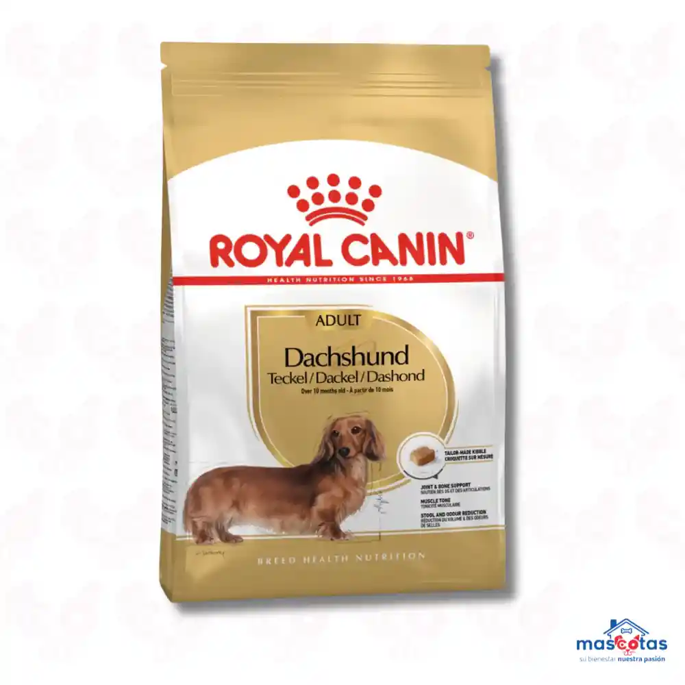 Royal Canin Dachshund es un alimento super premium diseñado específicamente para perros salchicha (adultos 10 meses o cachorros 10 meses), enfocado en proteger sus articulaciones y vértebras, mantener la masa muscular, y mejorar la higiene dental gracias a sus croquetas adaptadas. Ayuda a reducir el olor y volumen de heces Características Principales: Salud Articular y Ósea: Contenido adaptado de calcio y fósforo para mantener fuertes sus cortas extremidades y vértebras. Tono Muscular y Peso Ideal: Formulado para mantener la masa muscular y evitar el sobrepeso, lo que protege su columna. Croqueta a Medida: Diseñada para facilitar la masticación y reducir la formación de sarro con quelantes de calcio. Alta Digestibilidad: Incluye proteínas L.I.P. de alta digestibilidad y fibra para una buena digestión y heces firmes. Apoyo Inmunológico (Puppy): Complejo antioxidante con vitamina E para cachorros en crecimiento