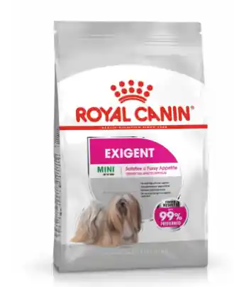 Royal Canin® Mini Exigente está especialmente formulado para complacer a perros selectivos que pesan hasta 10 kg, proporcionando todos los nutrientes esenciales para mantener su salud óptima; cada una de sus croquetas rectangulares ofrecen una textura crujiente agradable y están rellenas de un sabroso paté nutritivo.