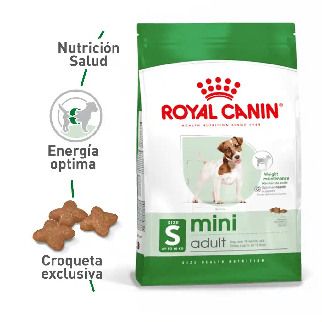 El alimento ROYAL CANIN Mini Adulto - 8 kg está diseñado específicamente para perros adultos de razas pequeñas (hasta 10 kg) y ofrece varios beneficios