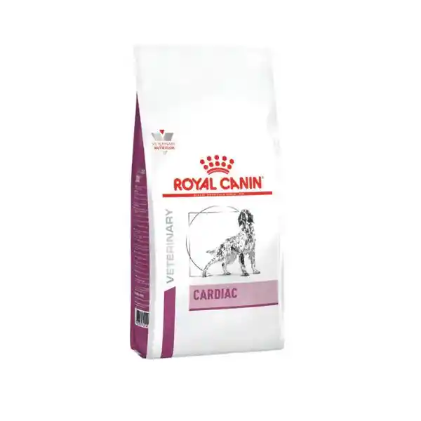 Royal Canin Veterinary Diet Canine Cardiac es un alimento formulado especialmente para perros con enfermedades cardíacas, como insuficiencia cardíaca congestiva o cardiomiopatías. Su fórmula incluye bajo contenido de sodio para reducir la retención de líquidos, ácidos grasos omega-3 (EPA y DHA) para proteger el corazón, además de taurina, L-carnitina y antioxidantes que favorecen la función cardíaca y reducen el estrés oxidativo. Está indicado solo para perros adultos bajo supervisión veterinaria y no es apto para cachorros, hembras gestantes o perros con insuficiencia renal avanzada.