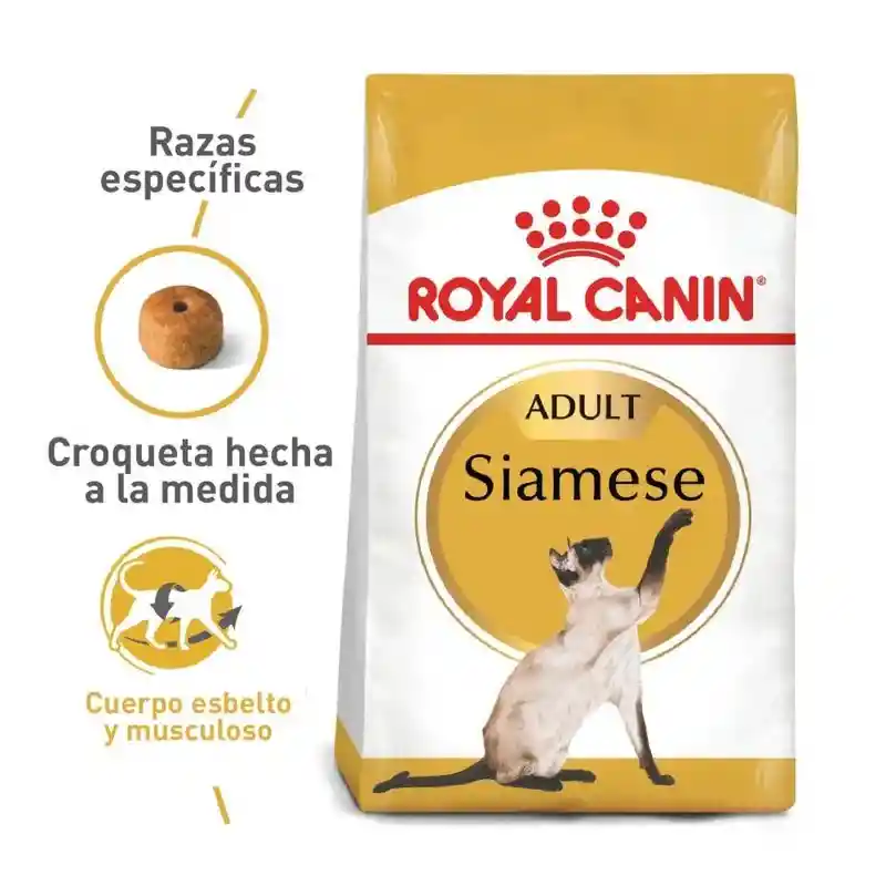 El alimento Siamés Adulto de ROYAL CANIN® está formulado teniendo en cuenta las necesidades específicas de los gatos siameses como el tuyo. Cuando le das a tu gato comida Siamés Adulto, te aseguras de que reciba todo el apoyo nutricional que necesita. Adecuado para gatos siameses adultos mayores de 12 meses de edad, la comida Siamés Adulto de ROYAL CANIN® tiene un mayor nivel de proteínas (38%) y un nivel moderado de grasa (16%) para ayudar a preservar el tipo de cuerpo largo, delgado y musculoso de su gato.