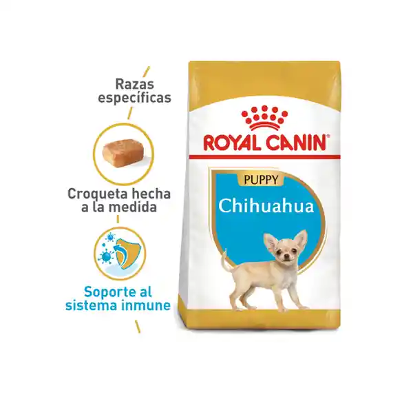 Royal Canin Chihuahua Puppy, Refuerzo Del Sistema Inmunológico: Mientras Crece, su Cachorro Experimenta Grandes Cambios y Nuevos Descubrimientos. Durante Este Periodo Clave, el Sistema Inmunológico Del Cachorro Sigue Desarrollándose. Royal Canin Chihuahua Cachorro Ayuda a Reforzar Las Defensas Naturales de su Cachorro Gracias a un Exclusivo Complejo de Antioxidantes Incluyendo Vitamina E. Croqueta Exclusiva: Especial Mandíbula Miniatura.
