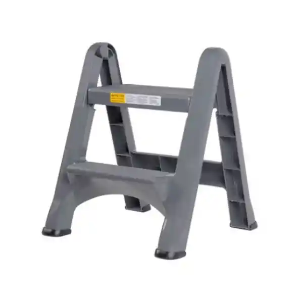 La Escalera Dos Pasos Plegable Gris Rubbermaid Soporta Hasta 136 Kg es Ideal Para Actividades de Mantenimiento y Ocupa Poco Espacio al Almacenarla. Es Resistente y Con la Textura de su Superficie Antideslizante Brinda Mayor Seguridad