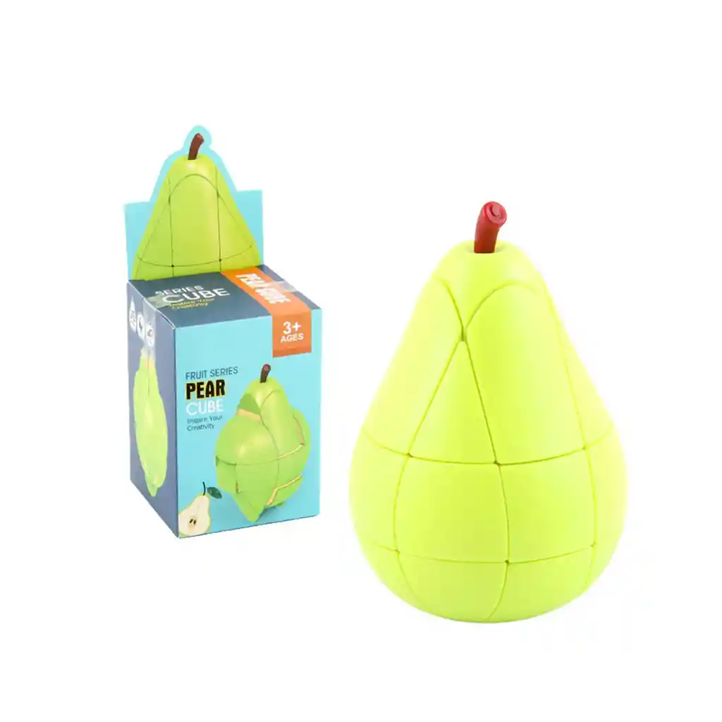 Cubo Rubik con diseño y colores inspirados en la pera, que combina diversión y desafío con un estilo fresco y original. Perfecto para quienes buscan un giro creativo en el clásico juego.