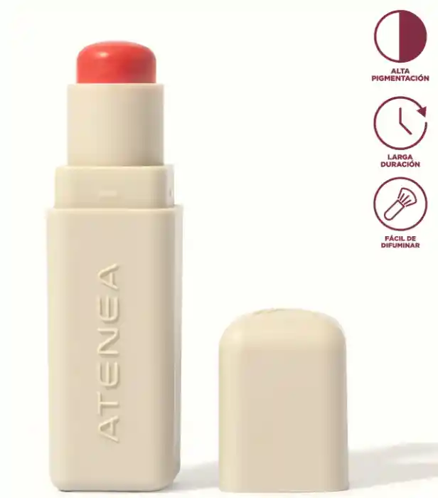 Los stick de Atenea Collection tienen textura cremosa, con fácil difuminación y de alta pigmentación, por lo que te recomendamos ir construyendo la tonalidad que deseas. El rubor en este caso aporta color a tu rostro, también puedes usarlo como sombra y labial, su tamaño es muy práctico para llevar en la cosmetiquera.