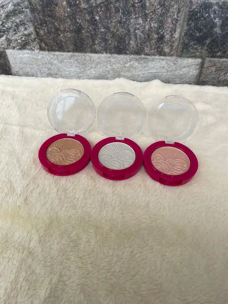 producto de maquillaje de la marca Ruby Rose, específicamente de la línea "Romantic Powder Blush" o productos similares con diseño floral. Estos productos suelen ser rubores o iluminadores en polvo compacto, tonos 04 tonos 05 tono 03