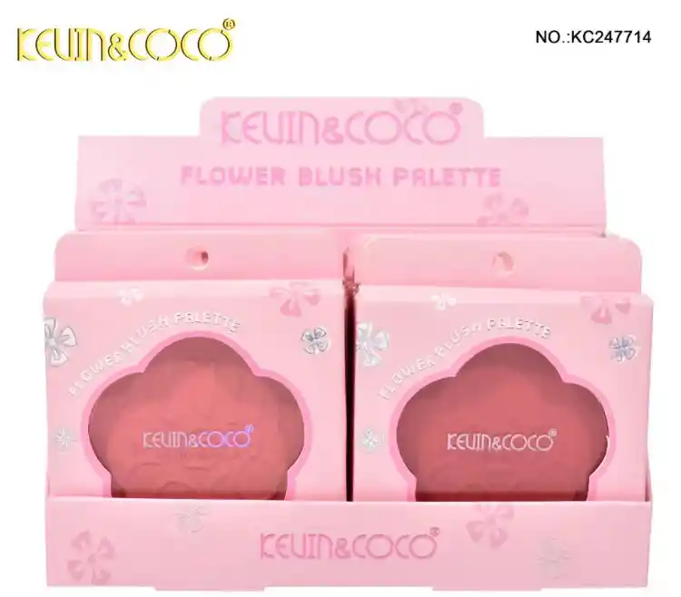 Marca y Producto: Es una paleta de rubor de la marca Kevin&Coco. Presentación: Viene en un estuche compacto de color rosa con un diseño de flores y forma de corazón en el interior. Tonos: Dependiendo de la versión, puede incluir 3 o 4 tonos diferentes de rubor por paleta, que pueden ser en polvo o en crema, y son versátiles para adaptarse a distintos tonos de piel y estilos de maquillaje.