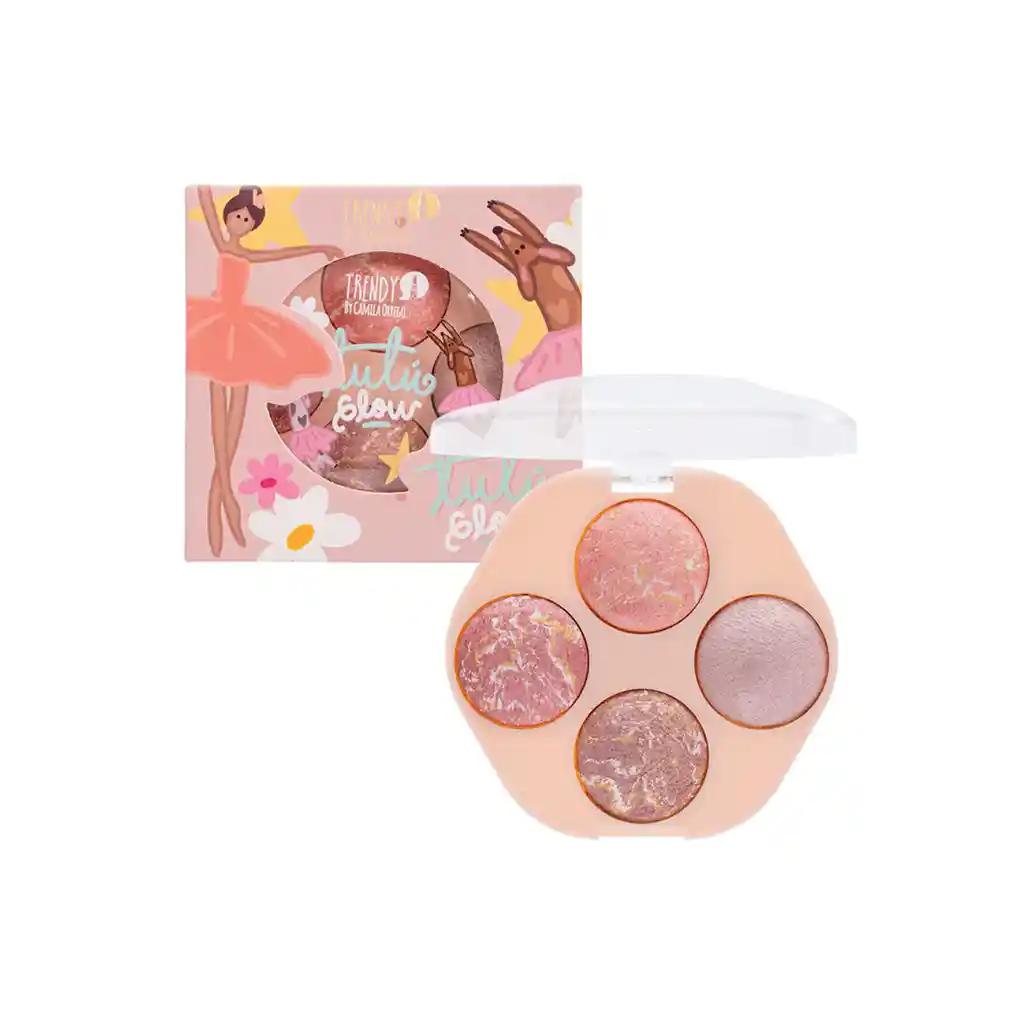 ¿Amas el glowy en el maquillaje? ¡Estás en el lugar indicado!, llegó el Tutú Glow listo para lograr el acabado luminoso perfecto. 4 tonos en una sola paleta que abarcan dos rubores satinados: Rosita y Coral, y dos iluminadores: Champaña y Dorado. Los puedes utilizar para sellar tu rubor líquido o cremoso favorito y darle un acabado luminoso demasiado hermoso. Son de textura muy suave y son ultra fácil de difuminar. Un tamaño perfecto para que paseen contigo siempre. Para sacarle más provecho puedes usarlas como sombra o iluminador. Su fórmula mineralizada te da mayor pigmentación, con una sola pasada logras un brillo potente. Aplica con una brocha en forma de gota o una difuminadora pequeña, solo debes difuminar suavemente con movimientos ascendentes en los puntos altos del rostro para un efecto lifting.