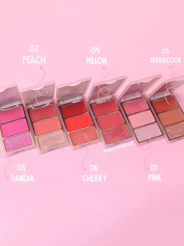 Trío de rubores monocromáticos en texturas versátiles. Sus fórmulas son suaves y tienen excelente adherencia, por que prolongan el uso de rubor, dándole a la piel un acabado sedoso y saludable. Incluye 1 tono luminoso, 1 tono cremoso y 1 tono Matte.