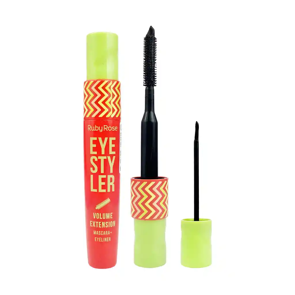 Pestañina + Delineador Eye Styler = Un 2 en 1 del que te vas a enamorar Paso 1: Delineador negro de larga duración Paso 2: Pestañina de secado rápido para todo tipo de pestañas y con diferentes efectos. - Pestañas con volumen extra y efecto extensión