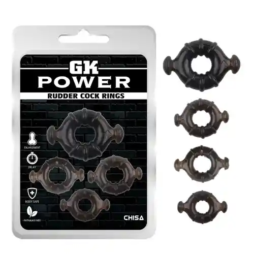 Juego de anillos para el pene, poseen nódulos que permiten una estimulación placentera. Su textura es flexible y vienen con asas para encendido/apagado rápido.