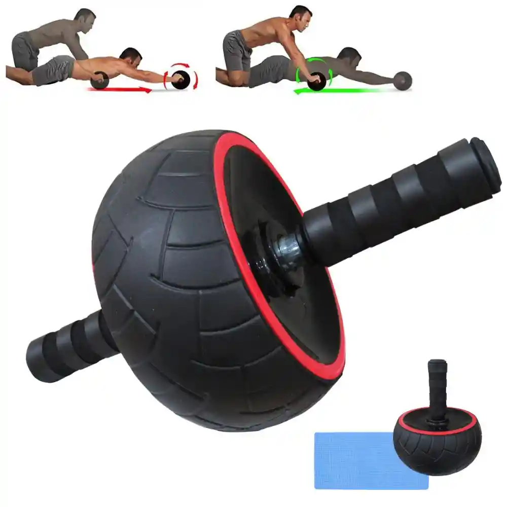 Rueda Ancha Abdominal Abs Rodillo Gym + Tapete NegroIdeal para tonificar y fortalecer el abdomen, brazos y espalda, fácil de utilizar y guardar, resistente y duradera, se puede utilizar en cualquier lugar, liviana y muy efectiva.• Rueda tonificadora de abdomen• Materiales: Plástico, eje metálico y 1 rodamiento ancho.• Barra con mangos de alta resistencia, antideslizantes confortables.Incluye:• Una Rueda reforzada.• Mango de alta resistencia anti deslizante.• Especialmente para tonificar abdomen alto, medio, bajo y laterales.• Fortalece la espalda y glúteos.• También Adelgaza y tonifica la cintura.• Peso de usuario: 100 Kilos• Uso: Domestico e Institucional.
