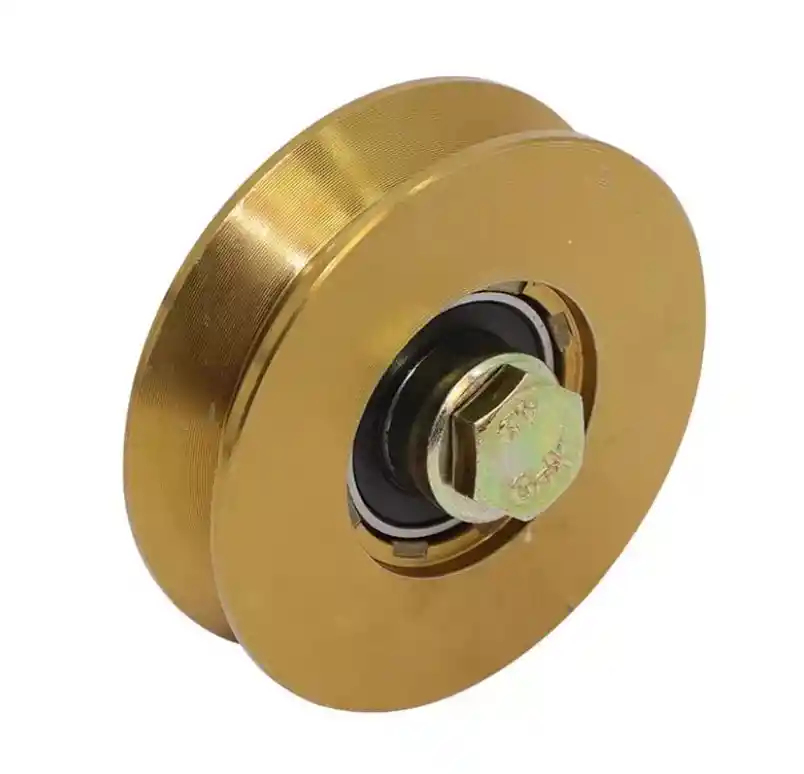 • Rueda para portón corredizo 70 mm con bulón • Acero torneado con rulemán blindado • Terminación: Zincado dorado • Diámetro: 68 mm • Espesor: 20 mm • Capacidad: 300 kg • Con buje, bulón y tuerca • Canal “V” • Marca UYUSTOOLS