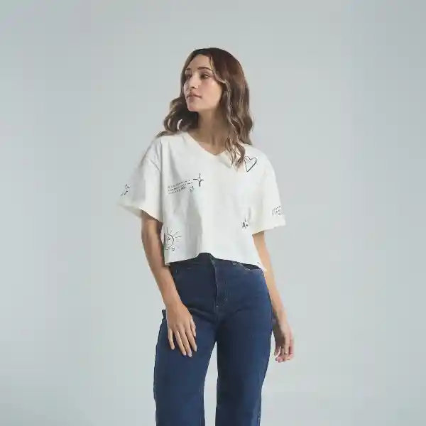 Camiseta oversize marfil con escote en V y manga corta, estampada con diferentes gráficos en negro en el frente, espalda y mangas. Composición: 100% Algodón La modelo mide 1,70 m y usa talla S. Cuidados especiales: Leer la etiqueta de cuidados antes de lavar. Envío: entre 3 y 5 días hábiles. Envío gratis en compras superiores a 150,000 COP.
