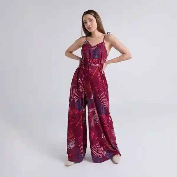 Enterizo Take your time - Vinotinto: Enterizo estampado color vino tinto oversize, con escote en “V” y falsos internos, bolsillos laterales y bota ancha tipo palazzo. Cuenta con cremallera invisible en el costado derecho y cordón removible en la misma tela. Composición: 96% poliéster, 4% spandex. Cuidados: Leer la etiqueta de cuidados antes de lavar.