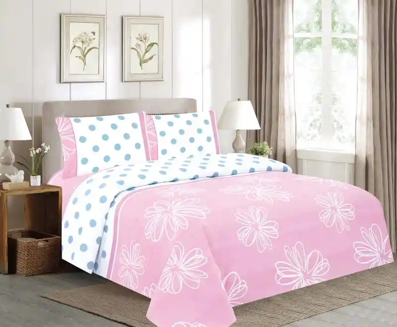 Juego de sábanas Estampadas cama doble Excelente calidad con renovados diseños para que le des ese toque personal a tu hogar. Características: -Para uso en cama doble -Medidas 1.40x1.90x30 Cm Aprox, 2 fundas 54x76 Cm -Elaboradas en microfibra 100% poliéster -Textura suave y placentera -No destiñen -No motosean -Planchado permanente -Con embone decorativo que les da un toque de elegancia -Variados diseños