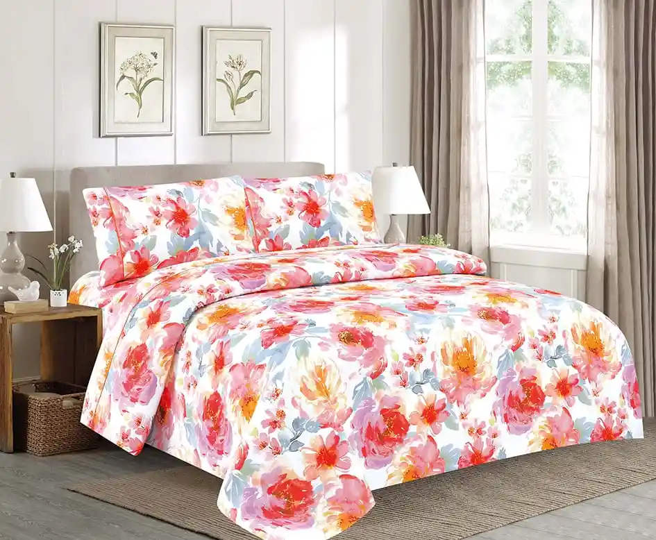 Juego de sábanas Estampadas cama doble Excelente calidad con renovados diseños para que le des ese toque personal a tu hogar. Características: -Para uso en cama doble -Medidas 1.40x1.90x30 Cm Aprox, 2 fundas 54x76 Cm -Elaboradas en microfibra 100% poliéster -Textura suave y placentera -No destiñen -No motosean -Planchado permanente -Con embone decorativo que les da un toque de elegancia -Variados diseños